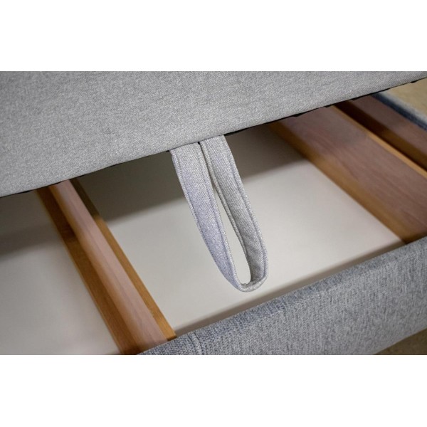 Beépített ágyneműtartóhoz egyszerű hozzáférni és méretei miatt kényelmesen elférnek benne az ágyneműk, takarók.