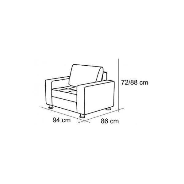 külső méret: 94 × 86 cm, ülőmagasság: 44 cm, beülőmélység (párnával): 56 cm, beülőmélység: 78 cm, háttámlamagasság: 72 cmSzövetek