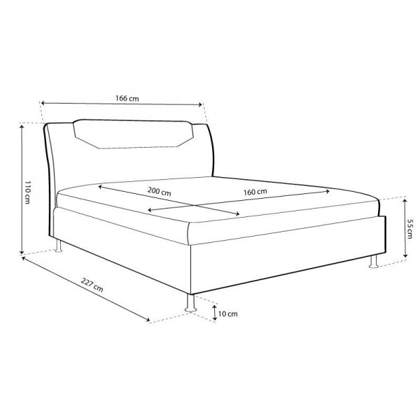 Külső méret: 227 cm X 166 cm Fekvőfelület: 160 cm X 200 cm Fekvőfelület magasság: 55 cm Teljes magasság: 110 cm