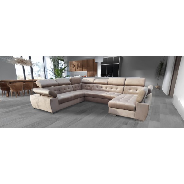 magas fekhelyes, képpel azonos vagy ellentétes állásban rendelhető, hátulja szövettel bevonva, kiemelő mechanika, vízlepergető szövet, hullámrugós, ágyazható, 2 db ágyneműtartó, állítható fejtámla, állítható kartámla, 300 cm szélesség fölött