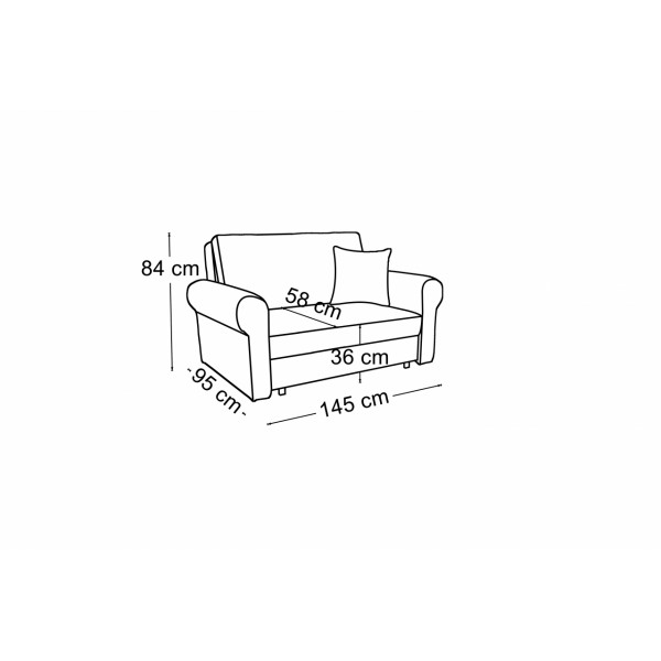 külső méret: 145 cm x 95 cm, fekvőfelület: 195 cm x 111 cm, ülőmagasság: 36 cm, beülőmélység: 58 cm, magasság: 84 cmSzövetek