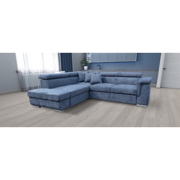 jobbos-balos állásban rendelhető, hátulja szövettel bevonva, kiemelő mechanika, hullámrugós, szövet, ágyazható, ágyneműtartós, állítható fejtámla, 250 - 300 cm szélesség között