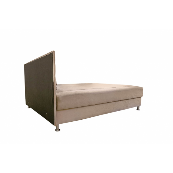 csak 160 x 200 cm-es méretben rendelhető, fehér laminált ágyneműtartó, 10 cm-es króm láb, vízlepergető szövet, extra rugós, ágyneműtartós