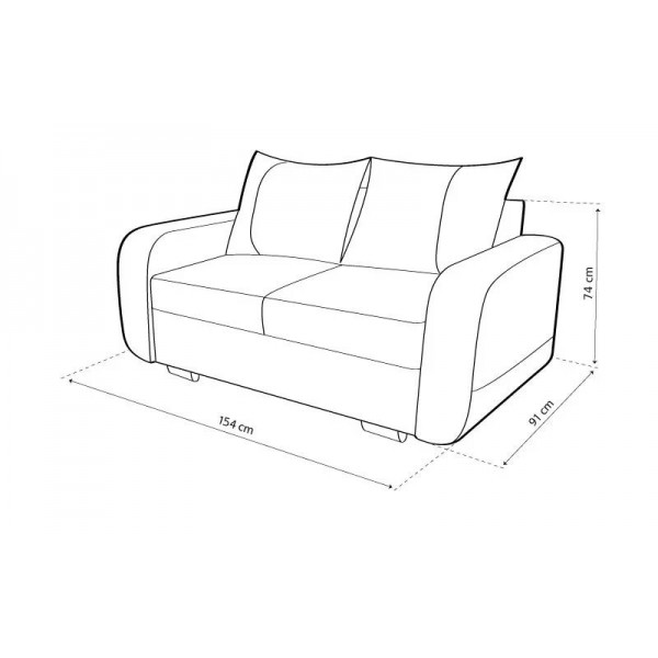 külső méret: 154 × 91 cm, ülőmagasság: 44 cm, beülőmélység (párnával): 55 cm, beülőmélység: 75 cm, háttámlamagasság: 74 cmSzövetek