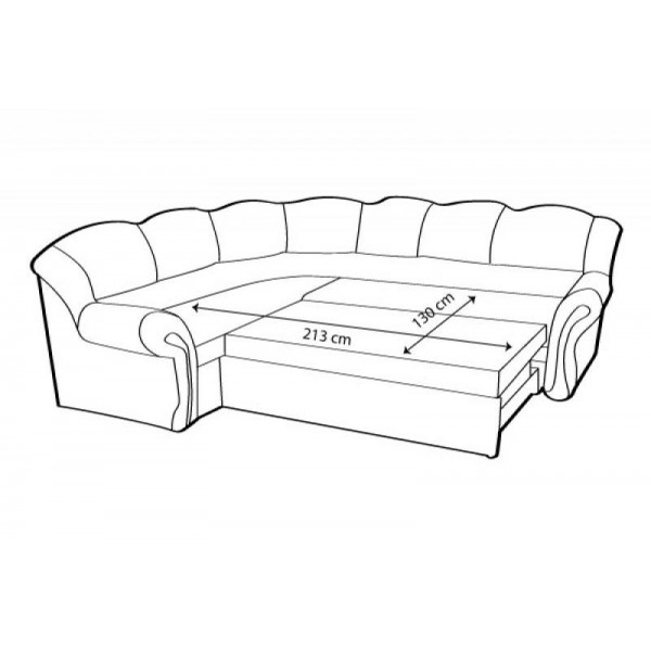 külső méret: 210 × 266 cm, fekvőfelület: 130 × 213 cm, ülőmagasság: 44 cm, beülőmélység: 56 cm, háttámlamagasság: 95 cmSzövetek