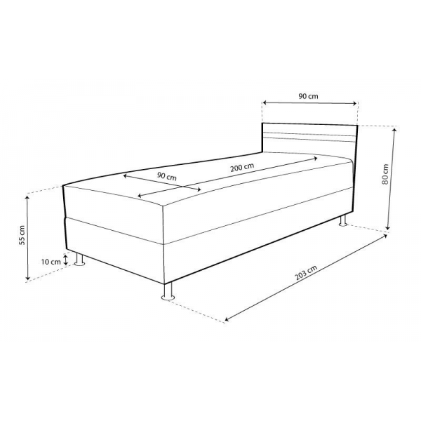 Külső méret: 90 cm X 203 cm Fekvőfelület: 90 cm X 200 cm Ülőmagasság: 55 cm Teljes magasság: 80 cmSzövetek