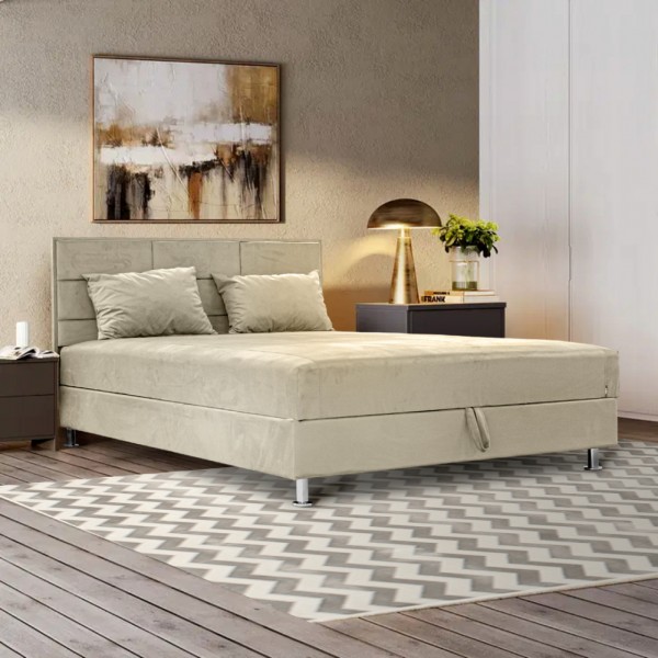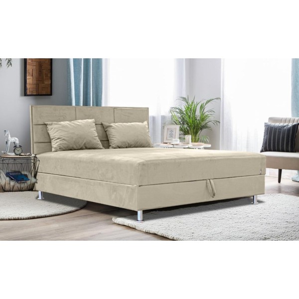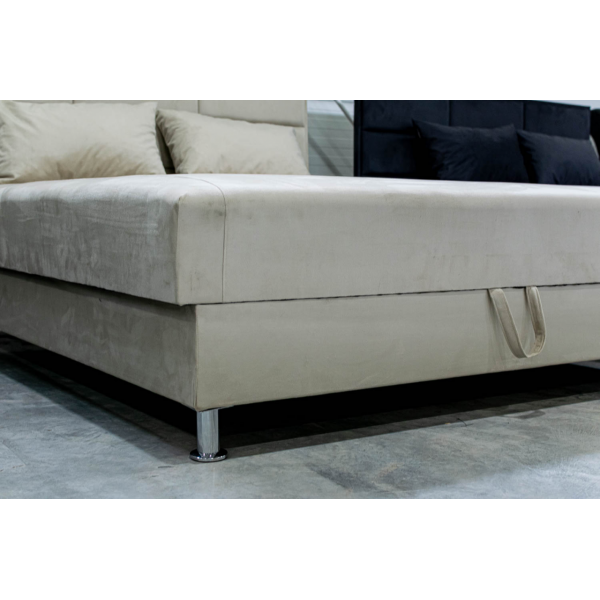fehér laminált ágyneműtartó, 10 cm-es króm láb, ortopéd rugó, szövet, ágyneműtartós