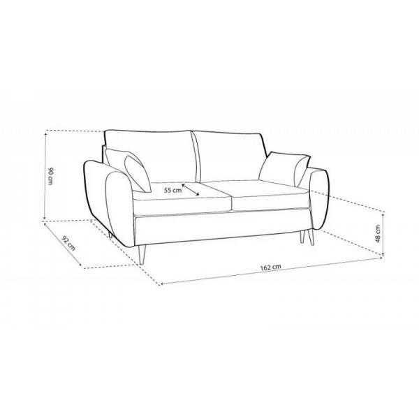 külső méret: 162 x 92 cm, ülőmagasság: 48 cm, beülőmélység (párnával): 55 cm, teljes magasság: 90 cm - 3-as kanapé: