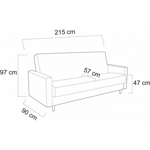 külső méret: 215 x 90 cm, fekvőfelület: 190 x 120 cm, ülőmagasság: 47 cm, beülőmélység: 57 cm, háttámlamagasság: 97 cmSzövetek
