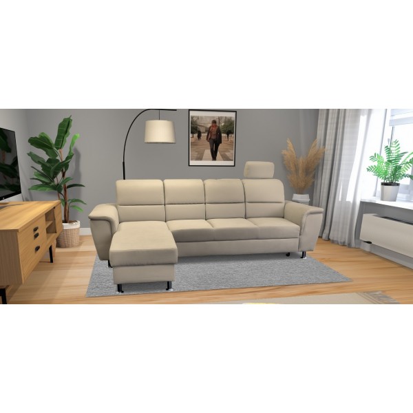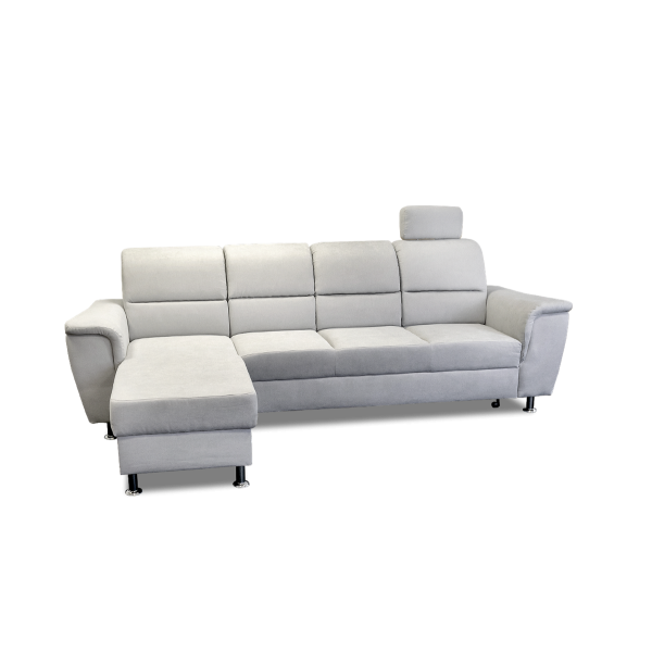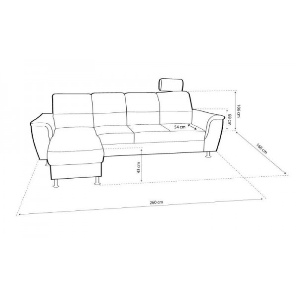 magas fekhelyes, jobbos-balos állásban rendelhető, hátulja szövettel bevonva, hullámrugós, szövet, ágyazható, ágyneműtartós, állítható fejtámla, 250 - 300 cm szélesség között