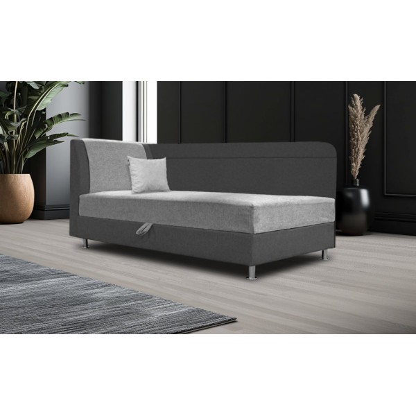 jobbos-balos állásban rendelhető, fehér laminált ágyneműtartó, 10 cm-es króm láb, vízlepergető szövet, extra rugós, ágyneműtartós