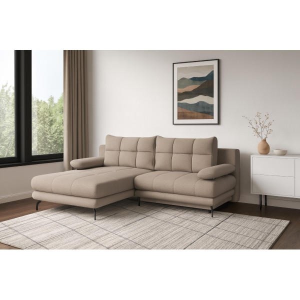 Nincs korlátozva a kanapé/sarokülő elhelyezése, mivel a bútor hátulja is ugyanazzal a szövettel van bevonva, mint a termék többi része, így nem szükséges a falhoz tolva használni, bárhol szabadon elhelyezhető.