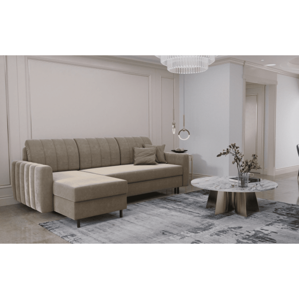 Nincs korlátozva a kanapé/sarokülő elhelyezése, mivel a bútor hátulja is ugyanazzal a szövettel van bevonva, mint a termék többi része, így nem szükséges a falhoz tolva használni, bárhol szabadon elhelyezhető.
