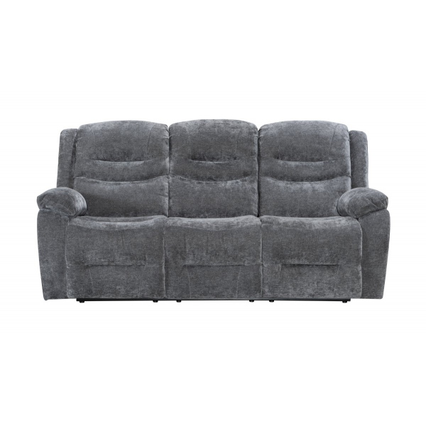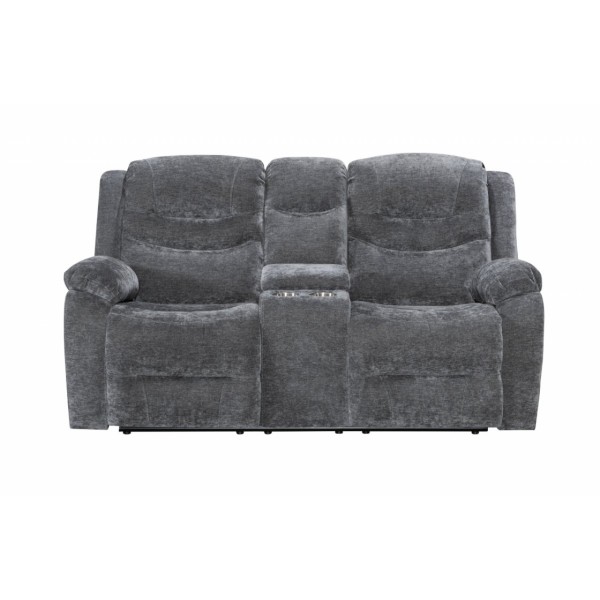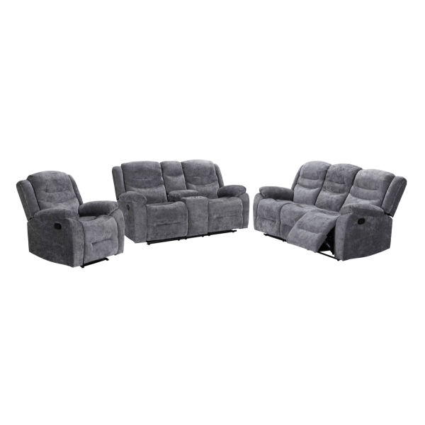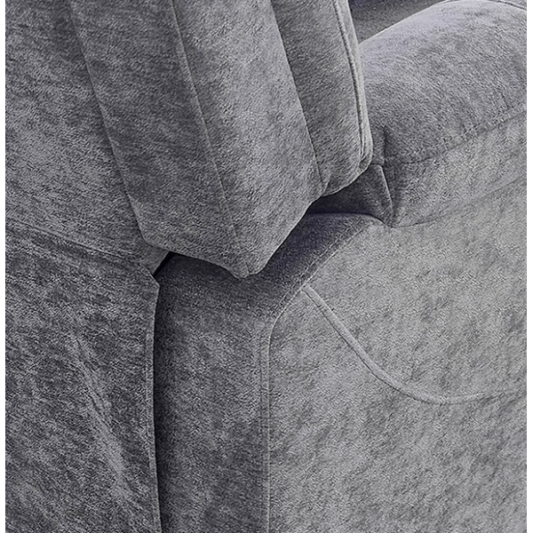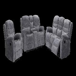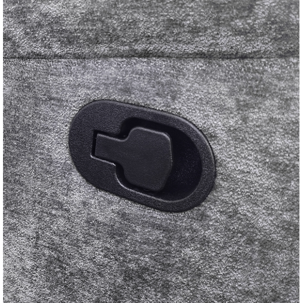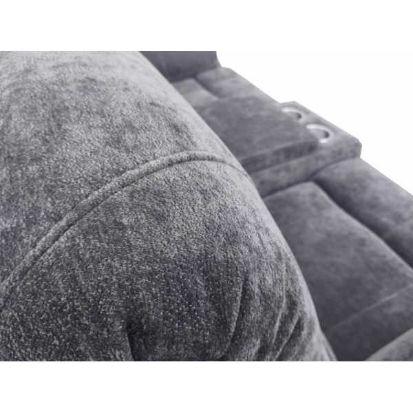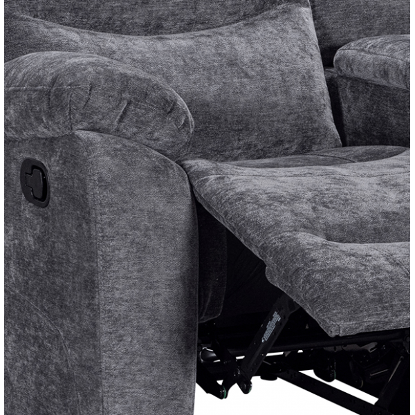 hátulja szövettel bevonva, tárolórekesz a kartámlában, dupla pohártartó, állítható lábtartó, kanapé középső ülőrésze fix, hullámrugós, szövet