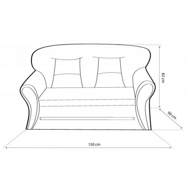 külső méret: 150 × 90 cm, ülőmagasság: 40 cm, beülőmélység: 56 cm, háttámlamagasság: 82 cmSzövetek