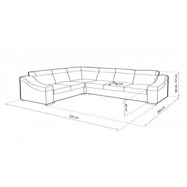 Külső méret: 325 cm X 260 cm Ülőmagasság: 40 cm Beülőmélység: 60 cm Teljes magasság: 80 cm – 97 cm Fekvőfelület: 180 cm X 125 cmSzövetek