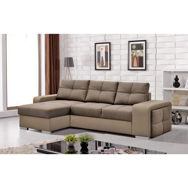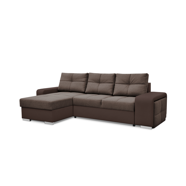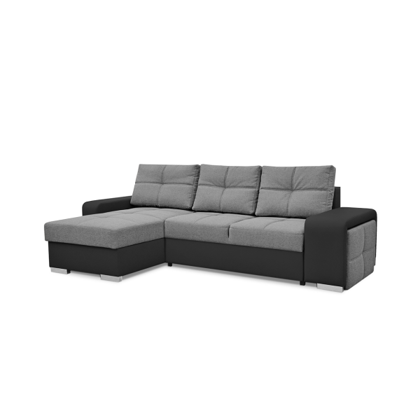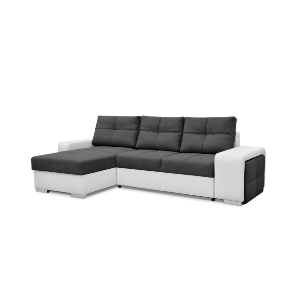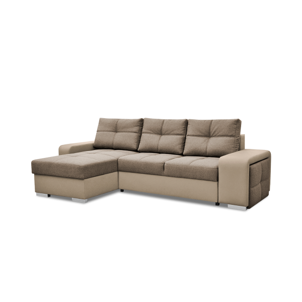 magas fekhelyes, univerzális, karjában puff található, hullámrugós, textilbőr - szövet kombinált, ágyazható, 2 db ágyneműtartó, 250 - 300 cm szélesség között