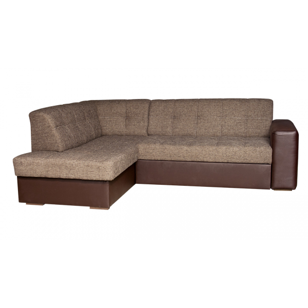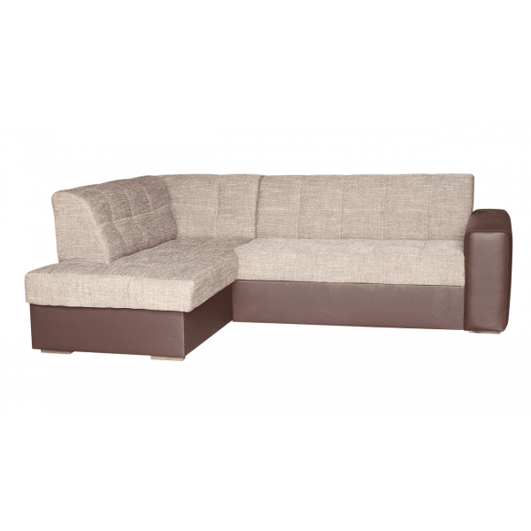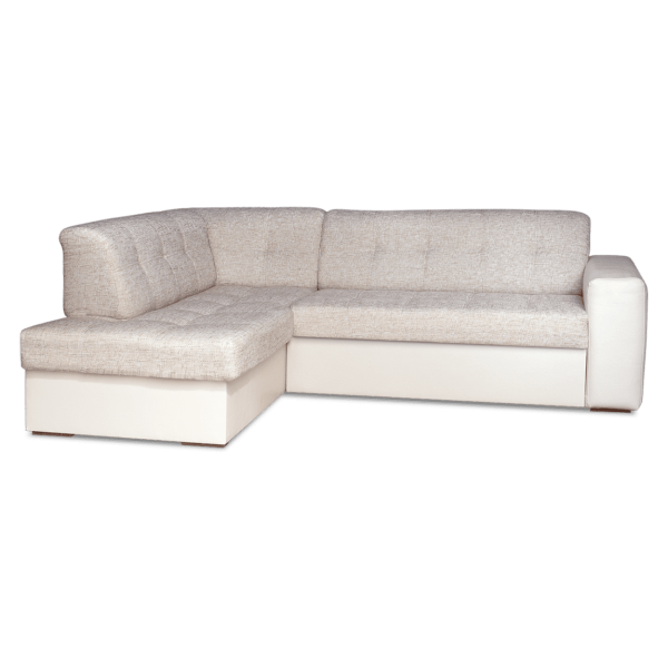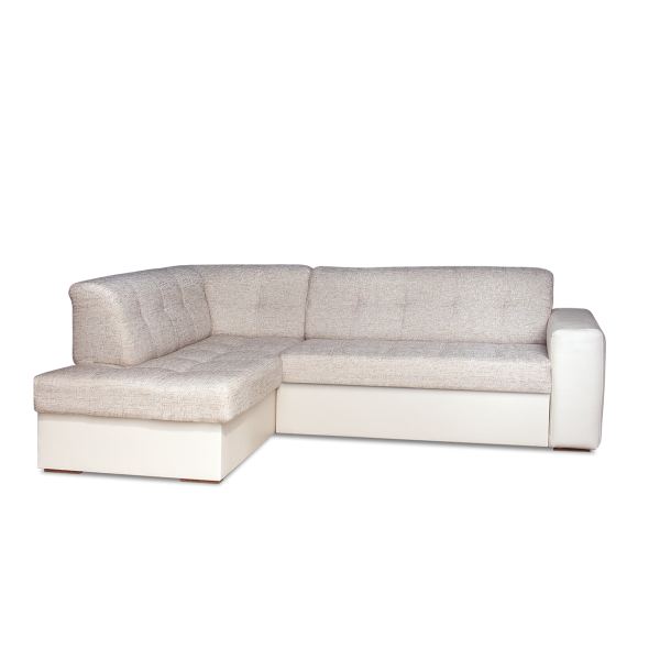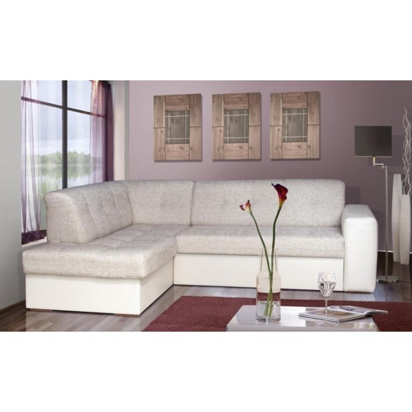 magas fekhelyes, jobbos-balos állásban rendelhető, bonell-rugós, textilbőr - szövet kombinált, ágyazható, 250 cm szélességig