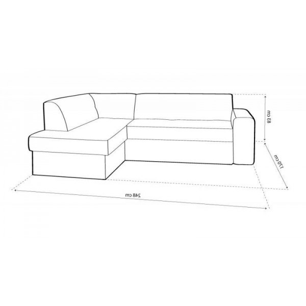 külső méret: 170 × 248 cm, fekvőfelület: 122 × 187 cm, ülőmagasság: 44 cm, beülőmélység: 58 cm, háttámlamagasság: 83 cmSzövetek