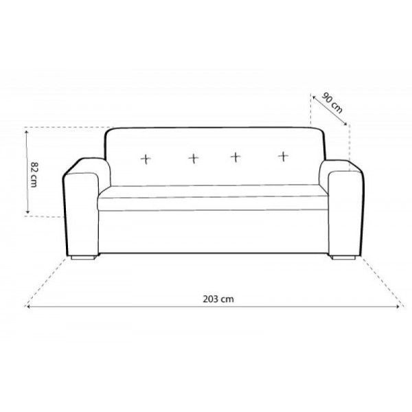 külső méret: 203 × 90 cm, fekvőfelület: 183 × 153 cm, ülőmagasság: 46 cm, beülőmélység: 65 cm, háttámlamagasság: 82 cmSzövetek