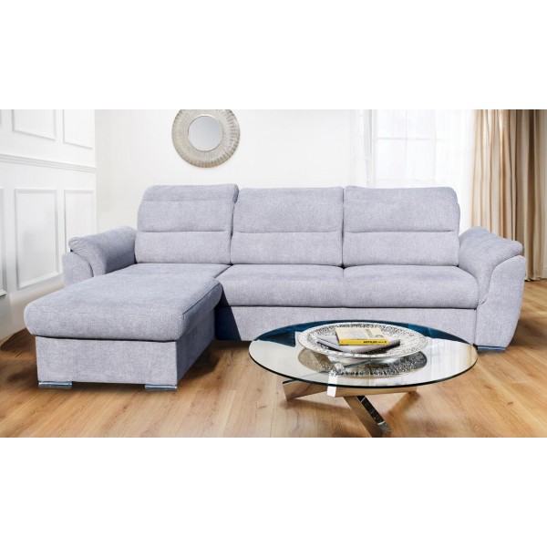 jobbos-balos állásban rendelhető, hátulja szövettel bevonva, kiemelő mechanika, hullámrugós, szövet, ágyazható, ágyneműtartós, állítható fejtámla, 250 - 300 cm szélesség között