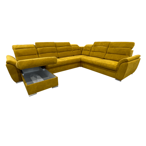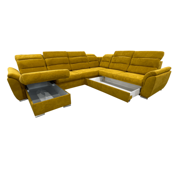 képpel azonos vagy ellentétes állásban rendelhető, hátulja szövettel bevonva, kiemelő mechanika, hullámrugós, szövet, ágyazható, 2 db ágyneműtartó, állítható fejtámla, 300 cm szélesség fölött