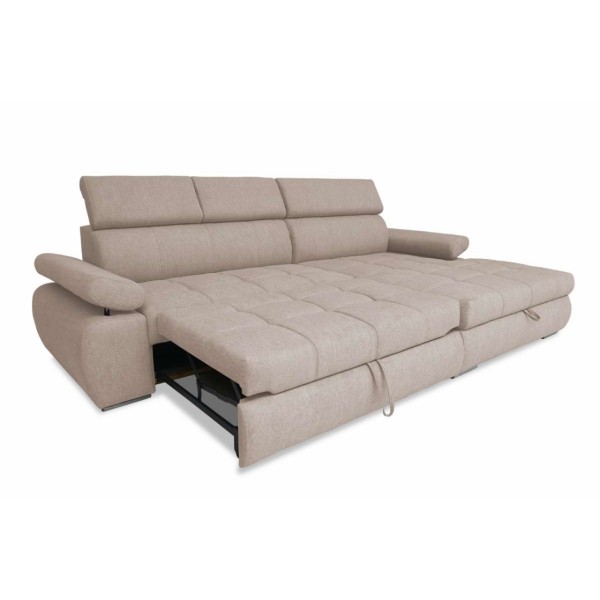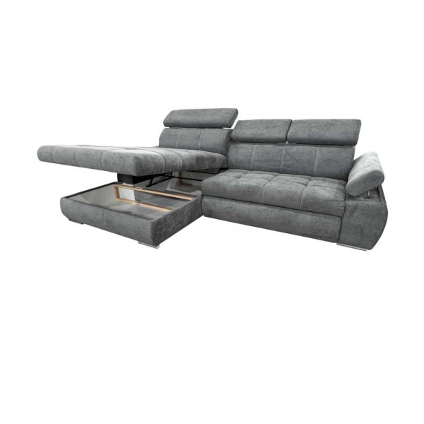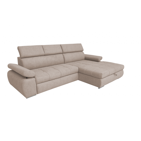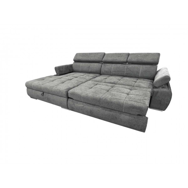 magas fekhelyes, jobbos-balos állásban rendelhető, hátulja szövettel bevonva, kiemelő mechanika, hullámrugós, szövet, ágyazható, ágyneműtartós, állítható fejtámla, állítható kartámla, 250 - 300 cm szélesség között